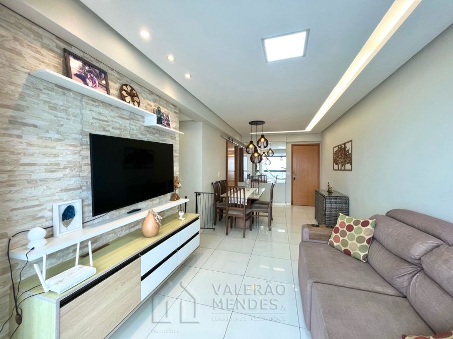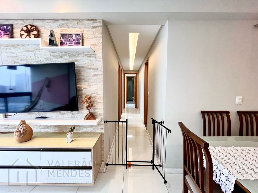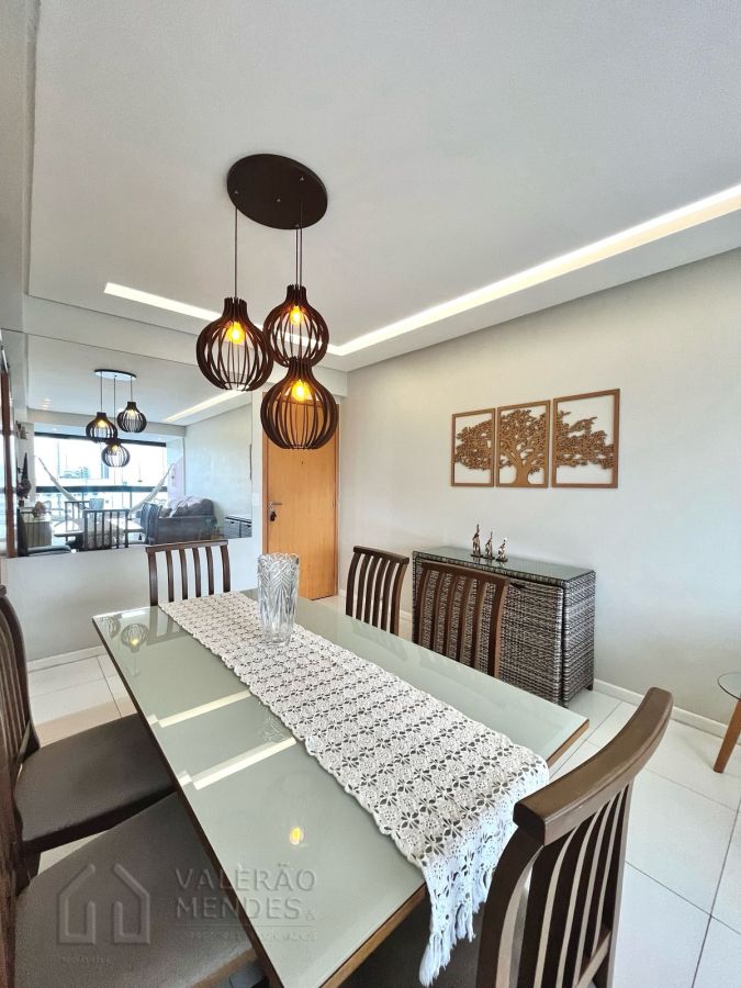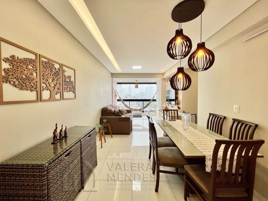Mobiliado, composto de Varanda integrada a Sala para 02 Ambientes, 3 Quarto(s) sendo 01 Suíte, dependência de empregada reformada para ser Closet, Área de Serviço, 02 WC(Social e Serviço), Copa, e 2 Vaga(s) de Estacionamento.